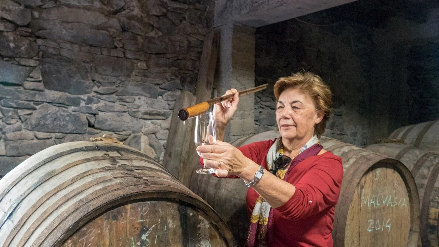 Isabel pours us a glass of Madeira ‘Malmsey’ straight from the barrel